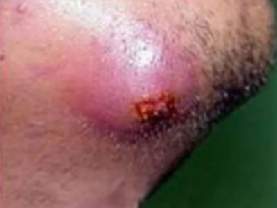颜面疖痈鼻子上有个疙瘩顶部溃烂图