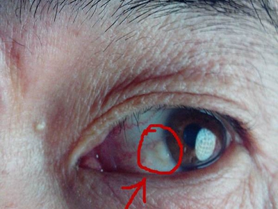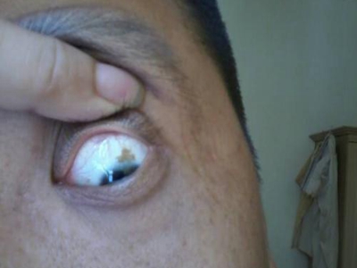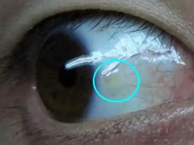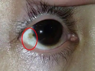 睑裂斑白眼球上有一小块黄白色斑图