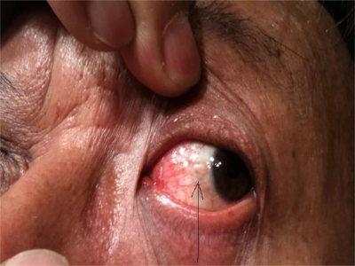 睑裂斑白眼球上有小块黄白色结节图