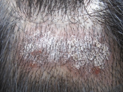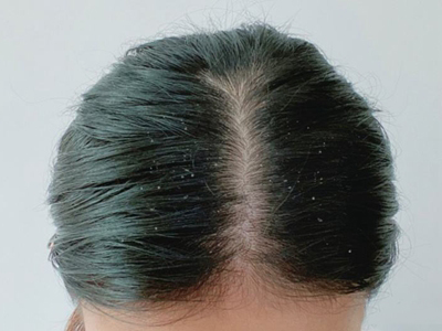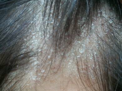 患有头皮糠疹的患者头皮表面较干燥,出现细小的片状头皮屑,且不易用手进行清除。随病情发展,附着的头皮屑会出现小片脱落,并伴有轻度瘙痒。