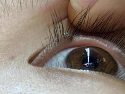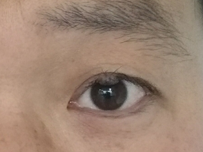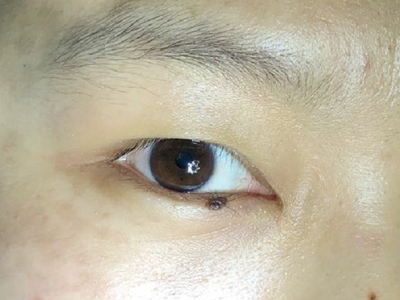 眼睑皮内痣发生在左侧上睑缘,单发,检查见一黄豆粒大小的疙瘩,颜色呈棕褐色,边界清楚,形状较规则,表面光滑发亮,上有眼睫毛正常生长。