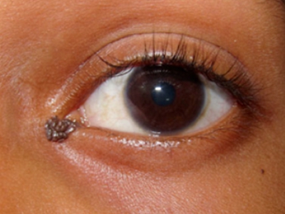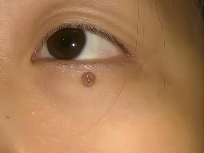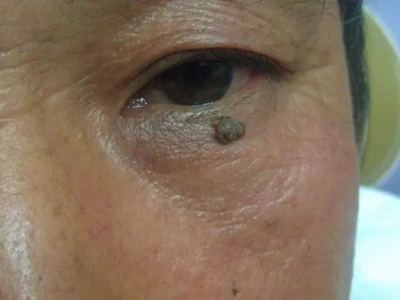 眼睑皮内痣下眼睑有褐色肉疙瘩图