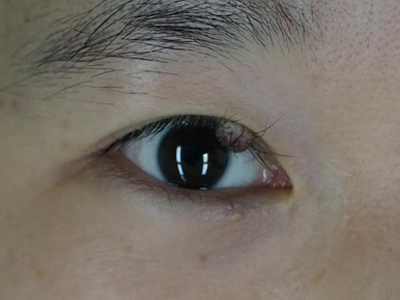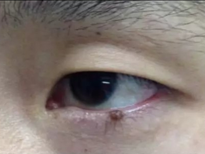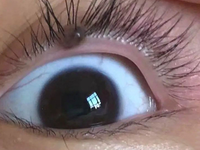 眼睑皮内痣患者上眼睑的睑缘上可以看到一个大疙瘩,豌豆大小,疙瘩上面有一些眼睫毛,明显突起,可遮挡一部分眼球,患者闭眼睛时有一定的异物感。