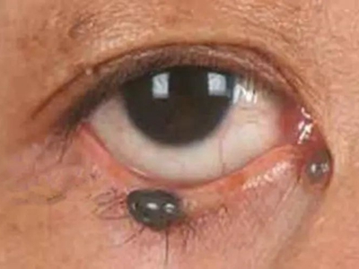 眼睑皮内痣发生在外眼角时,表现为小肉球,界限清楚,单发,颜色为棕黑色,触之不动,患者没有明显自觉症状或者闭眼时有异物感,严重时可导致视野受限。