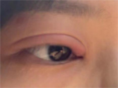 泪腺炎孩子上眼睑红肿下垂图
