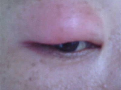 泪腺炎右眼的上眼皮发红肿胀图