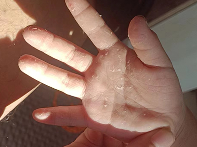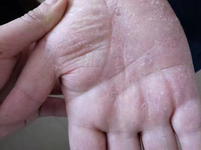 鳞屑角化型手癣手心有许多白色鳞屑图