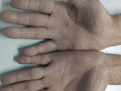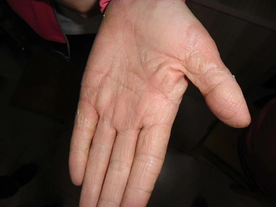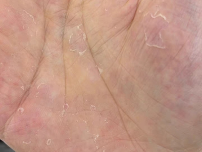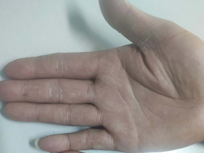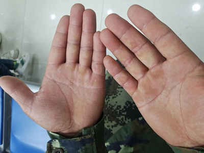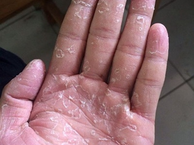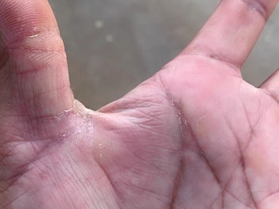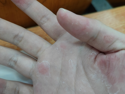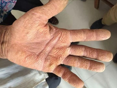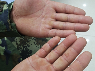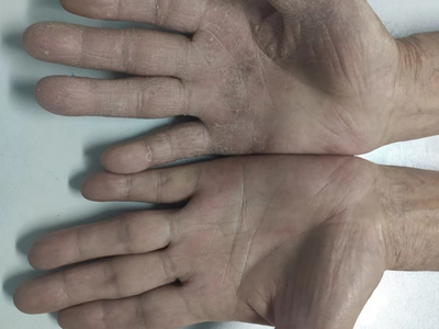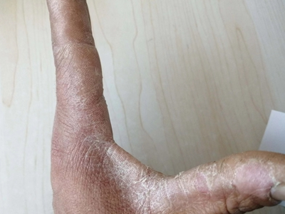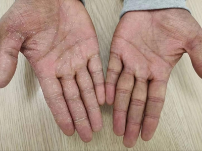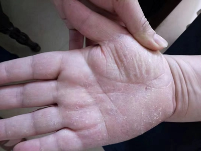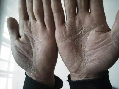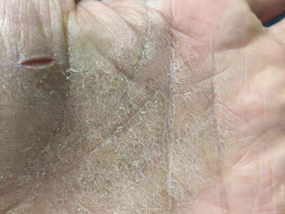 鳞屑角化型手癣手掌粗糙干燥脱皮图