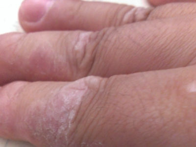 鳞屑角化型手癣手指缝粗糙干燥起皮图