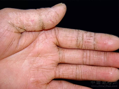 鳞屑角化型手癣手掌色素沉着脱屑图