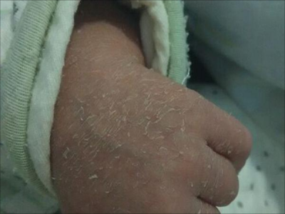 鳞屑角化型手癣手掌皮肤脱屑结痂图