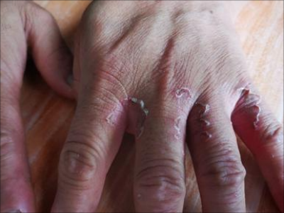 鳞屑角化型手癣大拇指皮肤脱屑图