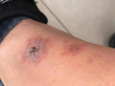 重症多形红斑可有高热、头痛、咽痛、乏力、关节疼痛和咳嗽等系统症状。首先于面、颈和躯干出现麻疹样红斑,渐波及四肢及其他部位。皮损为水肿性鲜红色或暗红色虹膜样斑点或淤斑,迅速扩大,相互融合,泛发全身,其上出现水疱、大疱或血疱。