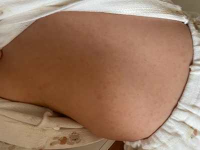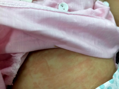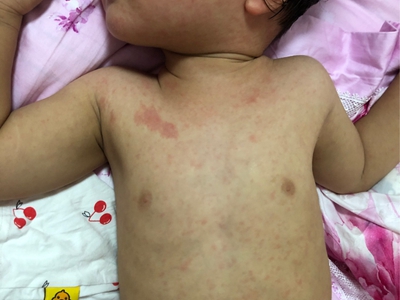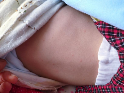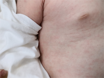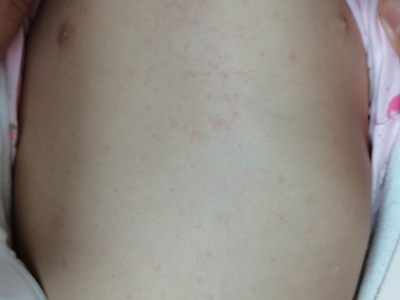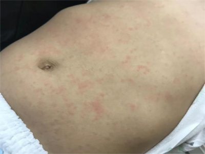 幼儿急疹皮损为玫瑰红色斑丘疹,轻微突出皮肤表面,像小红疙瘩一样,皮损发展较迅速,能累及全身,表面无脱屑和色素沉着,也无疼痛、瘙痒感,在1-2天后会逐渐消退。