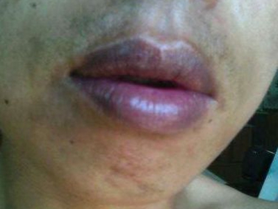 一氧化碳中毒嘴唇红紫色图