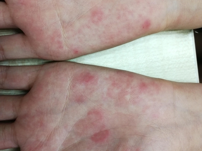 一氧化碳中毒表现为手部丹毒样红斑,形状以圆形为主,大小不一,红斑处皮肤温度较高,能够自行消退,还会伴随全身乏力、恶心呕吐、头晕等症状。