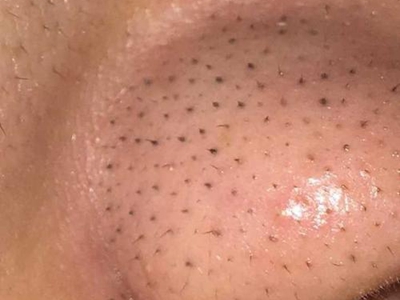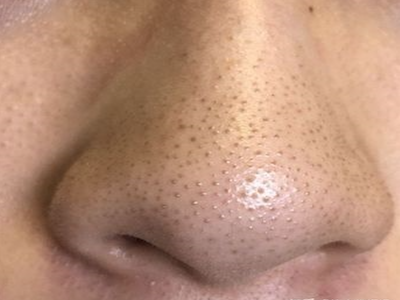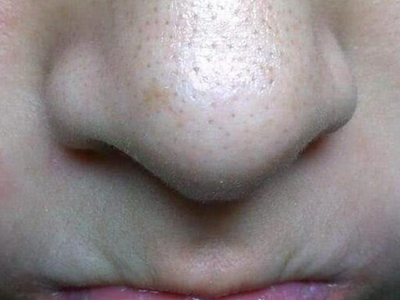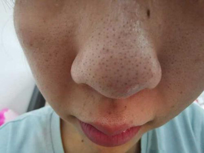 黑头会蔓延至整个鼻子,因此鼻子上几乎所有的毛囊口都有黑色小角栓,随着疾病的进展部分还会出现圆形丘疹样隆起,用手触摸鼻子皮肤会有凹凸不平的颗粒感。