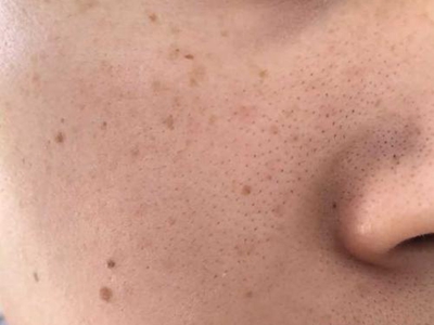 黑头鼻子上多个毛囊口有黑色小角栓,因此有很多黑点,同时伴有毛孔粗大、皮肤轻度出油。患者应注意皮肤清洁,忌用手挤压、搔抓皮损,以免引起继发性感染。