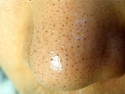 黑头导致患者面部毛孔粗大,鼻头出现很多针尖大小黑点,黑点外观为毛囊口的黑色小角栓,黑点之间不相互融合,独立存在,本病与皮脂腺活跃有关。