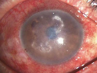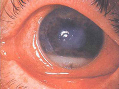 基质性角膜炎黑眼球上出现云雾状的白斑伴血丝图