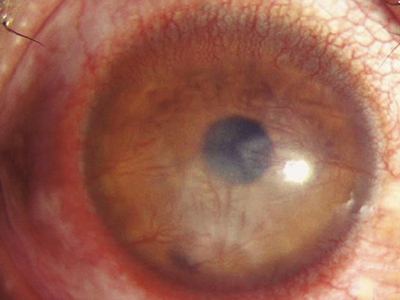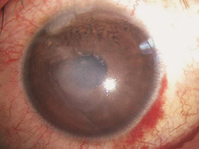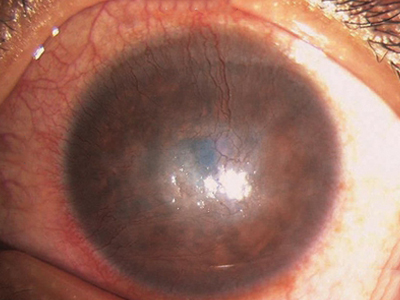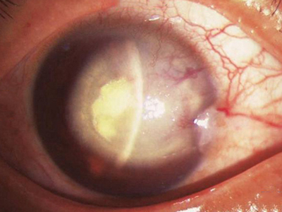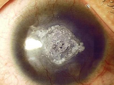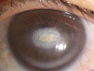 基质性角膜炎角膜有个蓝斑伴扇形白斑图