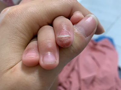 亚急性湿疹无名指顶端发红脱皮图