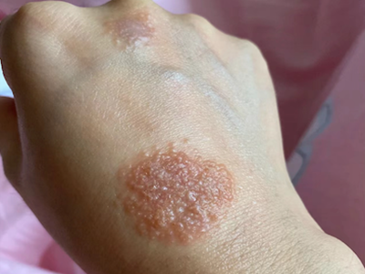 亚急性湿疹手掌有一个圆形红斑图