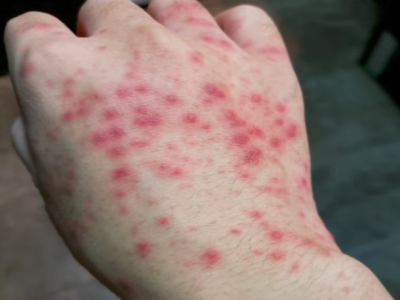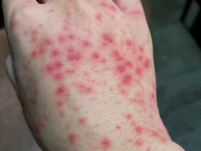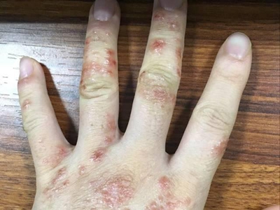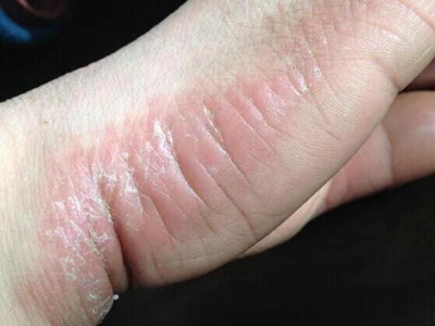 亚急性湿疹累及手背部位时,出现红色的小疹子,同时伴有皮肤大面积的粗糙,甚至伴有苔藓样改变,患处瘙痒明显,尤其是夜间,影响患者睡眠。