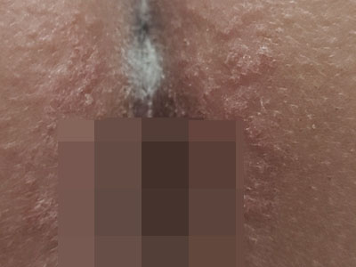 亚急性湿疹后期皮损处有灰褐色痂皮和白色鳞屑,基底呈暗红色偏褐色,瘙痒剧烈,搔抓后鳞屑脱落,痂皮破裂,露出浸润面,并有微微的渗血出现,此时常伴疼痛感。部分患者由于病损发生在脚底处,有明显的不适症状,可造成行走的困难。