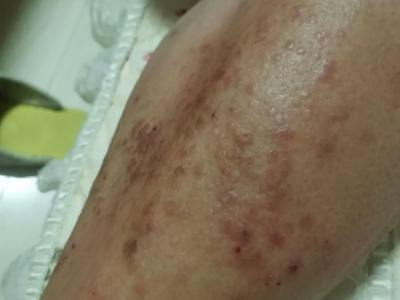 亚急性湿疹初起皮损为暗红色,伴有明显的瘙痒感,局部渗出减轻,但仍会出现小水疱,常在皮损面上聚集性分布,一般是由于急性湿疹治疗不及时或者治疗不当而迁延发展来的。