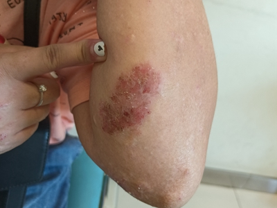 亚急性湿疹手腕红斑结痂图