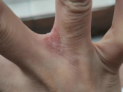 亚急性湿疹手掌大拇指侧面有一片红斑图
