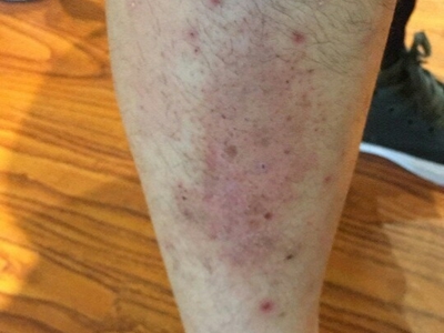 亚急性湿疹右脚内侧脚踝有好破皮的红斑图