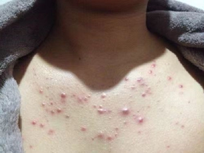 高雄性激素性痤疮胸前多个红色小丘疹图