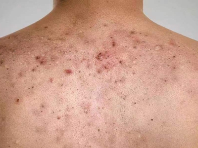 高雄性激素性痤疮背上长密密麻麻的红丘疹图