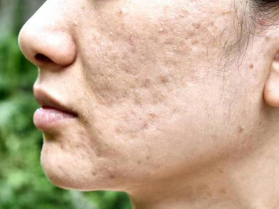 高雄性激素性痤疮面部瘢痕看起来坑坑洼洼图