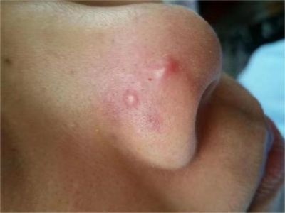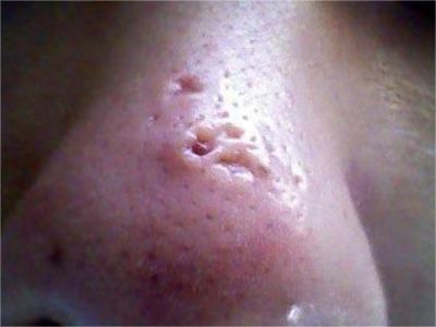 高雄性激素性痤疮鼻子发红伴有瘢痕图