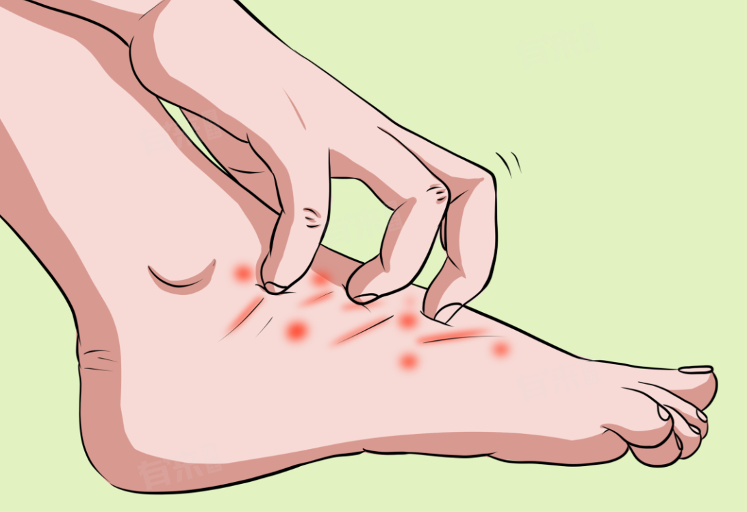 - 在夏季或户外活动较多时,脚部容易被蚊虫叮咬。蚊虫叮咬后会向人体内注入唾液等物质,人体的免疫系统会将其识别为外来的有害物质,从而引发过敏反应。被叮咬处会出现红疹子,通常为孤立的、散在分布的小红疹,瘙痒程度因人而异,但一般都比较明显。