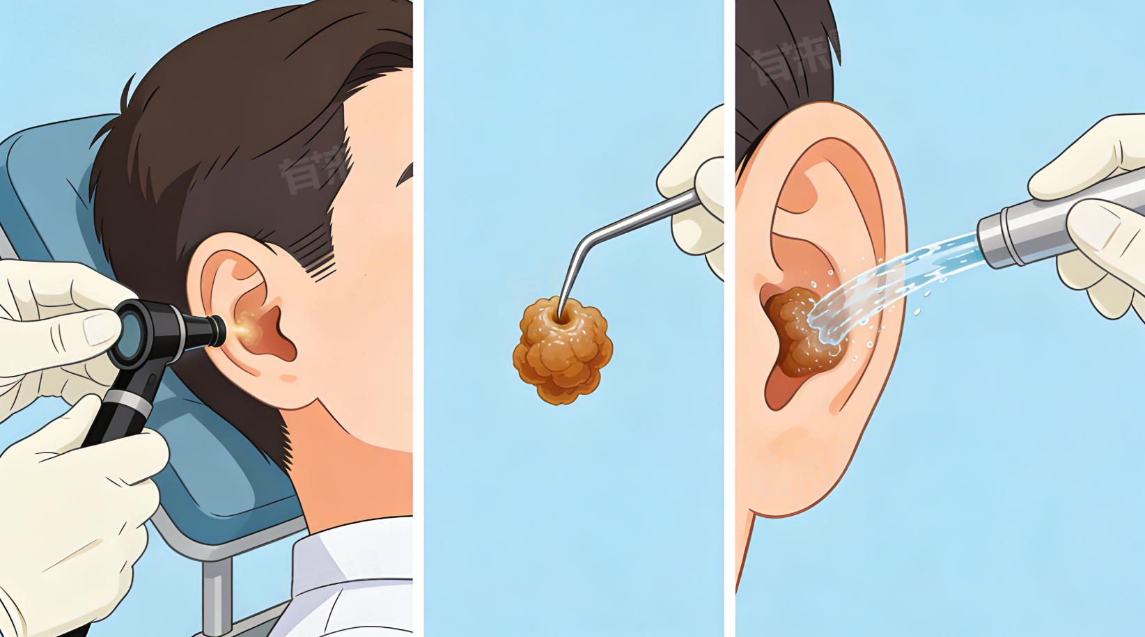 2、生理盐水冲洗清理:由耵聍堆积时间较长,形成中度栓塞,质地偏硬但未完全固化。可到医院由医护人员用生理盐水温和冲洗外耳道,利用水流冲击力将软化后的耵聍冲出,操作温和,不易损伤耳道和鼓膜。