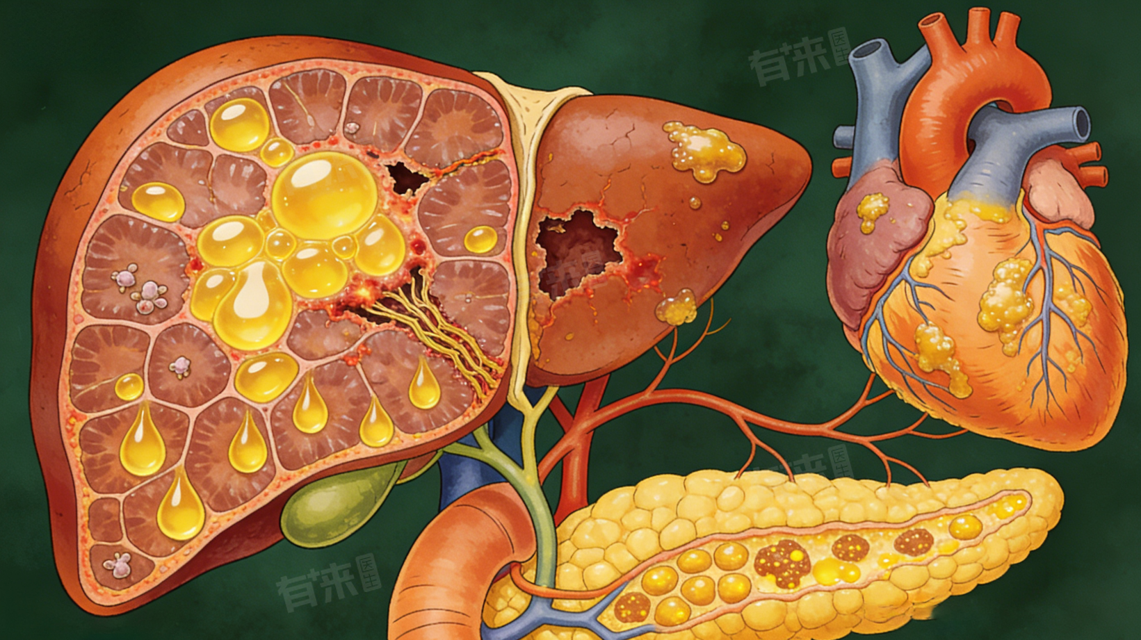 除肝脏本身外,重度脂肪肝还会影响全身代谢,诱发或加重高脂血症、高血压、糖尿病等代谢性疾病,同时增加心血管疾病的发病风险,如冠心病、脑梗塞等,形成全身性的健康隐患。