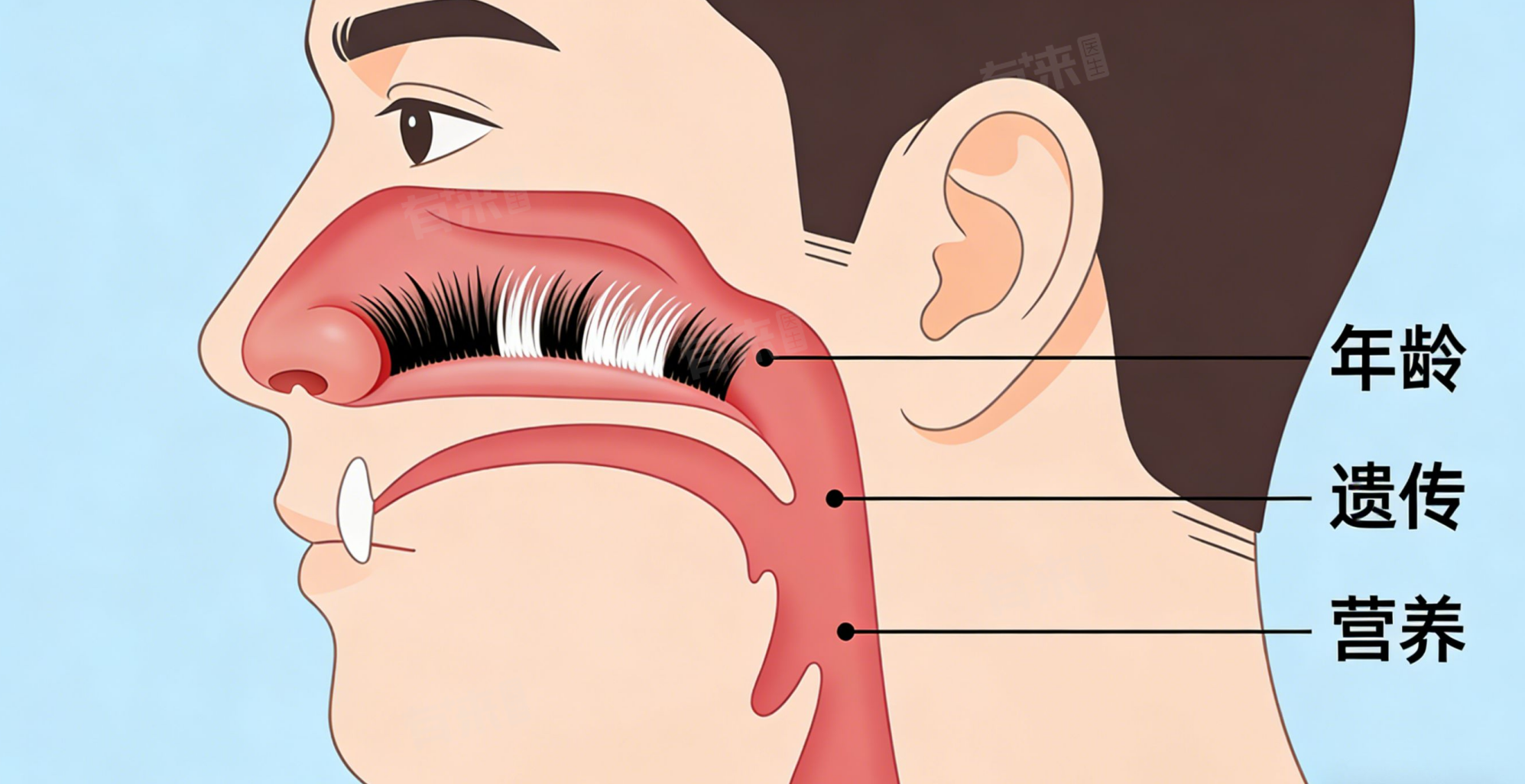 1、年龄因素:这是最常见的原因,随着年龄增长,身体各项机能逐渐下降,毛囊中的黑色素细胞活性降低,黑色素生成减少,鼻毛会逐渐变白,通常从40岁以后开始出现,年龄越大,白色鼻毛越多。