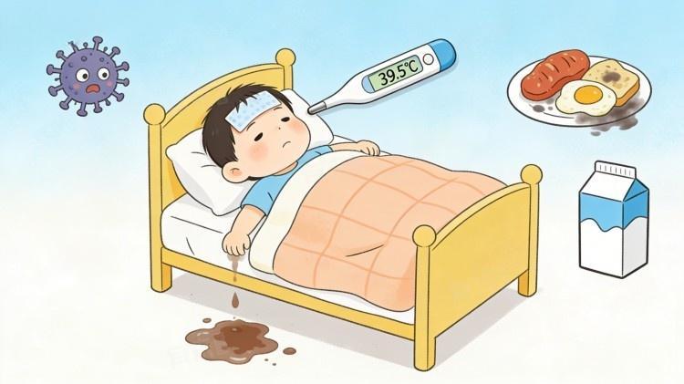 4、诺如病毒感染:诺如病毒感染后,会刺激幼儿胃肠道,导致急性胃肠反应,出现发烧、呕吐,呕吐症状较明显,可能伴随轻微腹泻,需及时补水,避免脱水,同时做好防护,防止交叉感染。