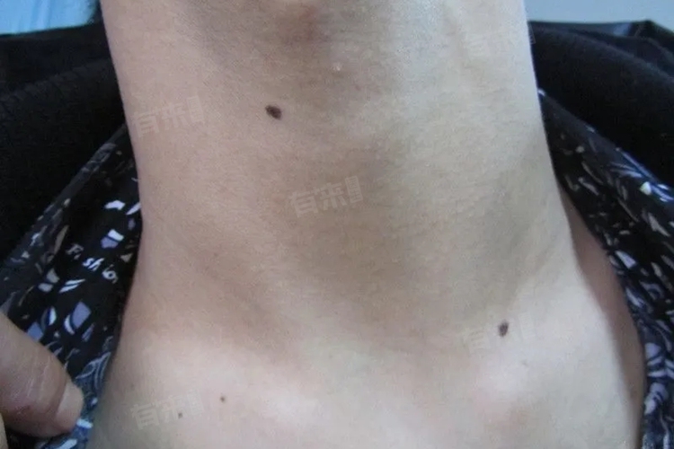 2、潜在风险痣:直径>6mm,边缘不规则,呈锯齿状,颜色不均,深浅不一,表面粗糙、隆起或出血,短期内明显增大。此时需警惕恶性黑素瘤,尤其是频繁摩擦部位,如衣领摩擦处的痣。