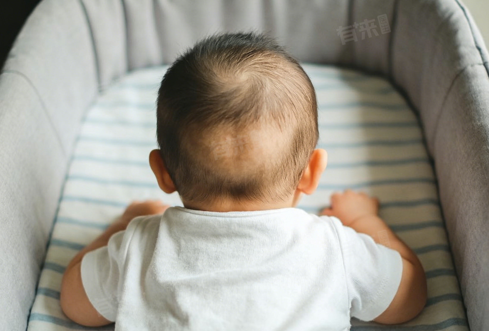 2、睡姿不当:婴儿长期保持仰卧睡姿,后脑勺持续受到压迫,会导致局部颅骨发育不均衡,加重后脑勺突出。长期单侧侧卧,也会使后脑勺一侧凸起明显,调整睡姿后,颅骨发育可逐渐趋于对称,缓解突出症状。