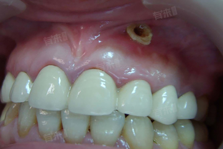 4、根尖周炎:通常是由细菌感染、物理因素(如打击碰撞)、化学因素(如药物使用不当)等引起,根尖处的牙龈出现瘘管,伴有局部疼痛、牙龈肿胀、出血、流脓等症状。建议进行根管治疗,摘除感染牙髓,根管消毒后应用牙胶尖密闭管腔、修补缺损。如果瘘管持续不愈合,可以刮除肉芽组织或进行根尖切除术促进愈合。