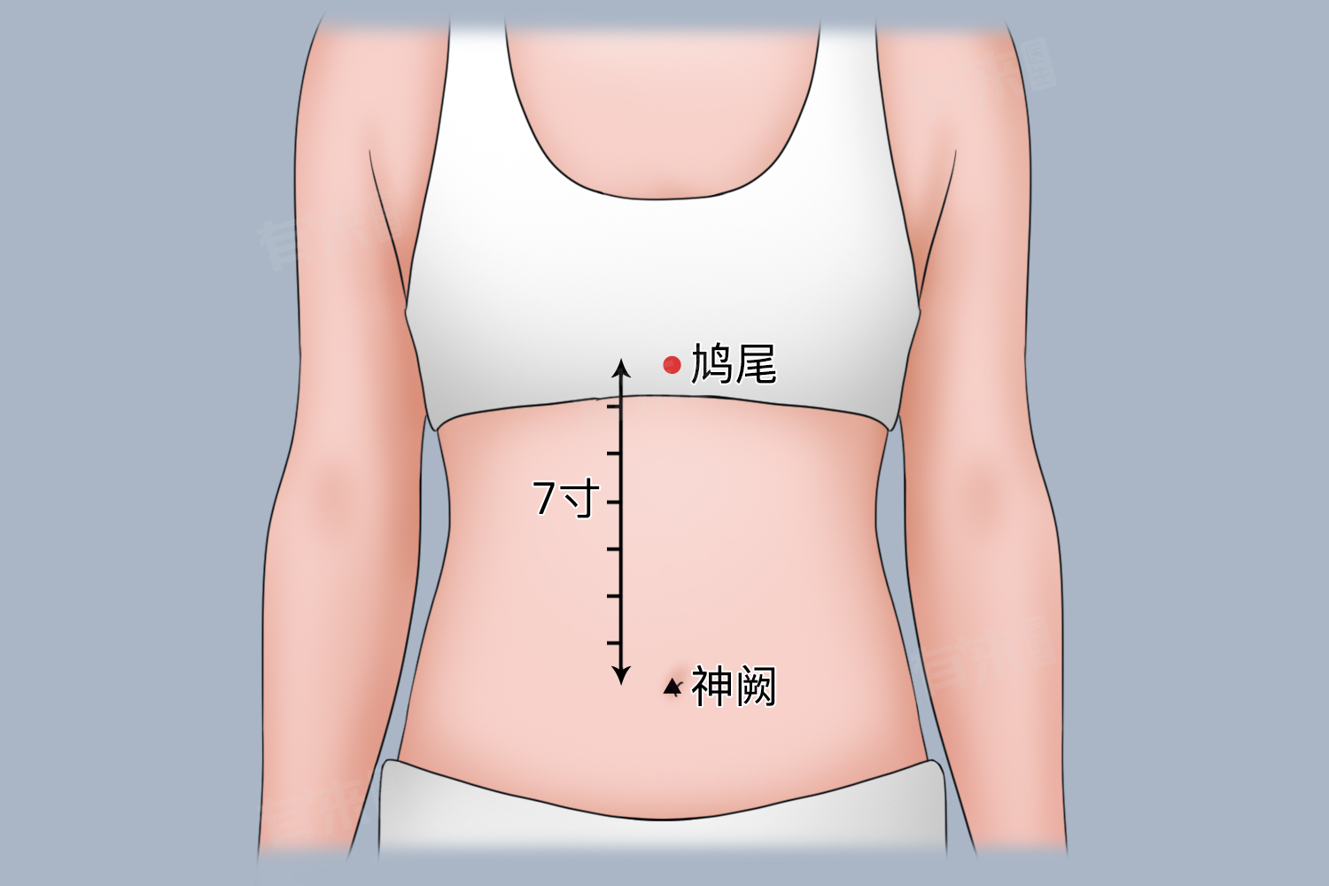 - 鸠尾穴位于上腹部,前正中线上,是任脉上的穴位,具体位置在剑突下方,脐上7寸处。从体表定位来看,可先找到胸骨剑突,其下方凹陷处稍下方一点便是鸠尾穴的大致位置。它的名字形象地描述了其所在部位的形态特点,仿佛鸠鸟的尾巴一般处于人体躯干的相对下方位置。