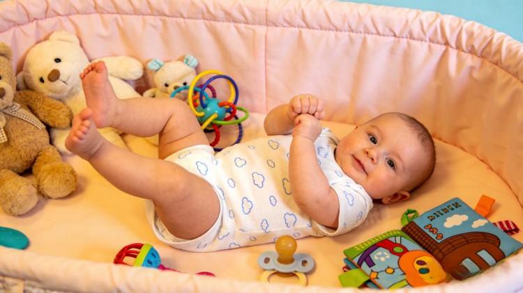 4、认知发育:认知能力显著提升,能清晰看清眼前20-30厘米内的物体,可追视移动的物体,对色彩鲜艳、会发声的玩具表现出明显兴趣。能区分熟悉与陌生的面孔,看到熟悉的人会表现出愉悦情绪,开始建立初步的物体恒存概念。