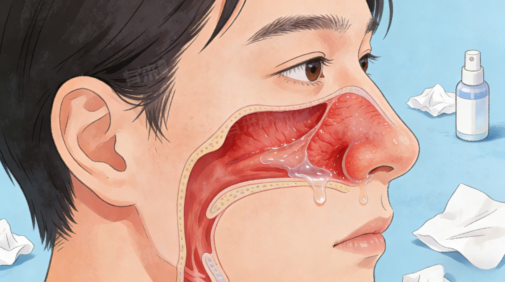 2、鼻腔冲洗护理:每日用生理盐水或海盐水冲洗鼻腔1-2次,清洁鼻腔黏膜,冲走过敏原、分泌物及炎症因子,减轻鼻腔黏膜充血水肿,可搭配鼻用糖皮质激素如糠酸莫米松鼻喷雾剂,增强抗炎效果。