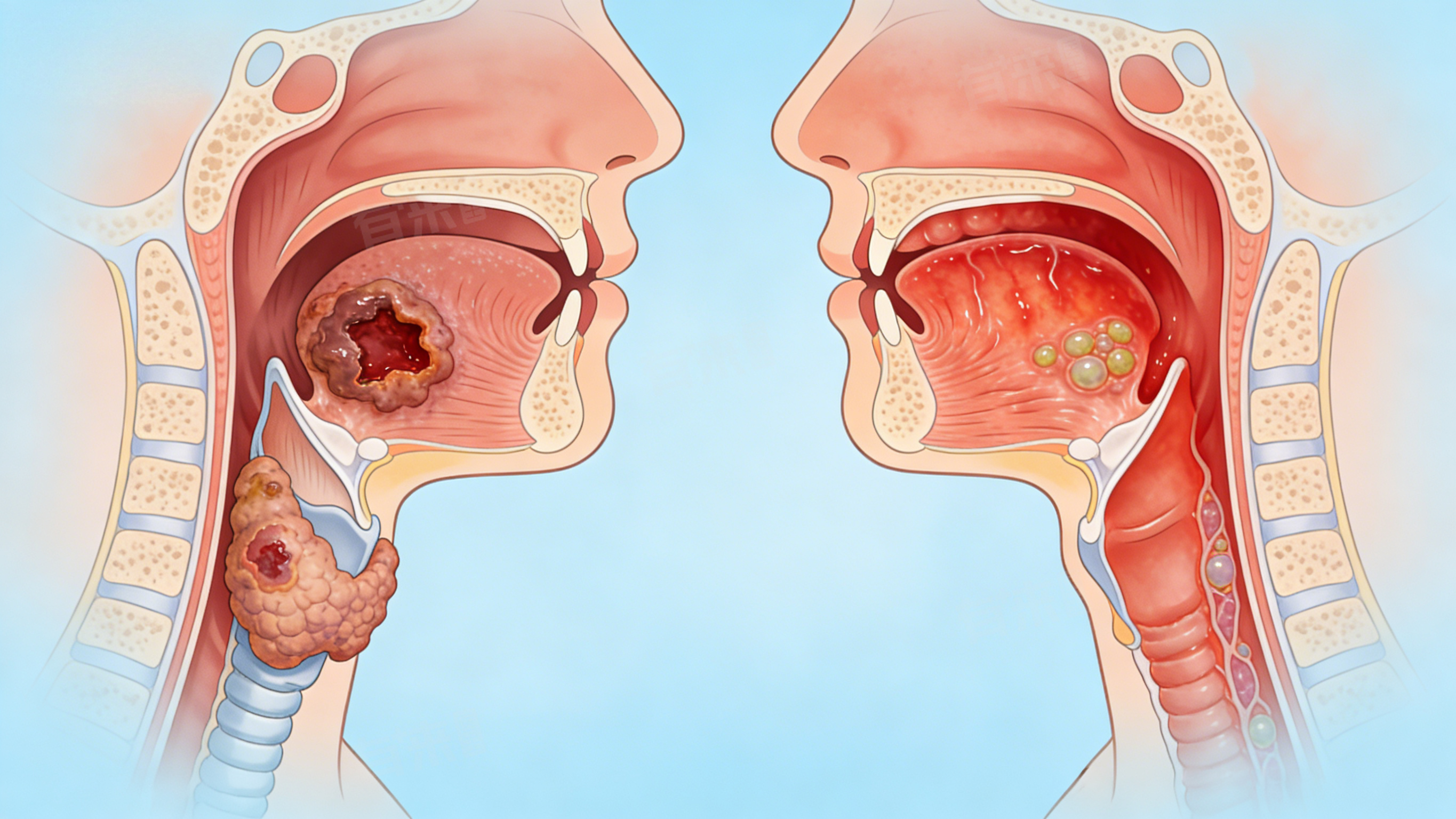 喉癌和咽炎是两种性质不同的咽喉部疾病,咽炎为良性炎症,喉癌为恶性肿瘤,二者在病因、症状、病程、治疗及预后上存在明显差异,明确区别可避免误判病情,及时采取对应处理,用药需遵医嘱。