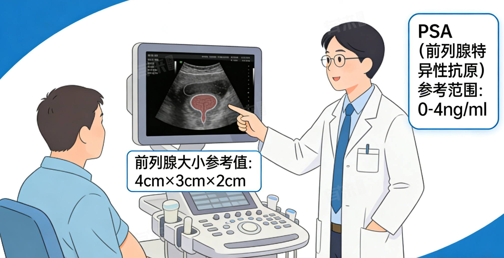 - PSA检查:通过抽血检测前列腺特异性抗原,是筛查前列腺异常增生与前列腺癌的重要指标,异常升高时需进一步做穿刺活检明确诊断。